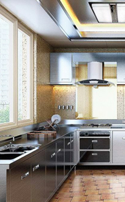 生產(chǎn)不銹鋼整體櫥柜時,要考慮電器、環(huán)境等因素。一起使用的抽油煙機(jī)、微波爐、烤箱,無論顏色、大小、風(fēng)格,都與櫥柜相搭配、相匹配。